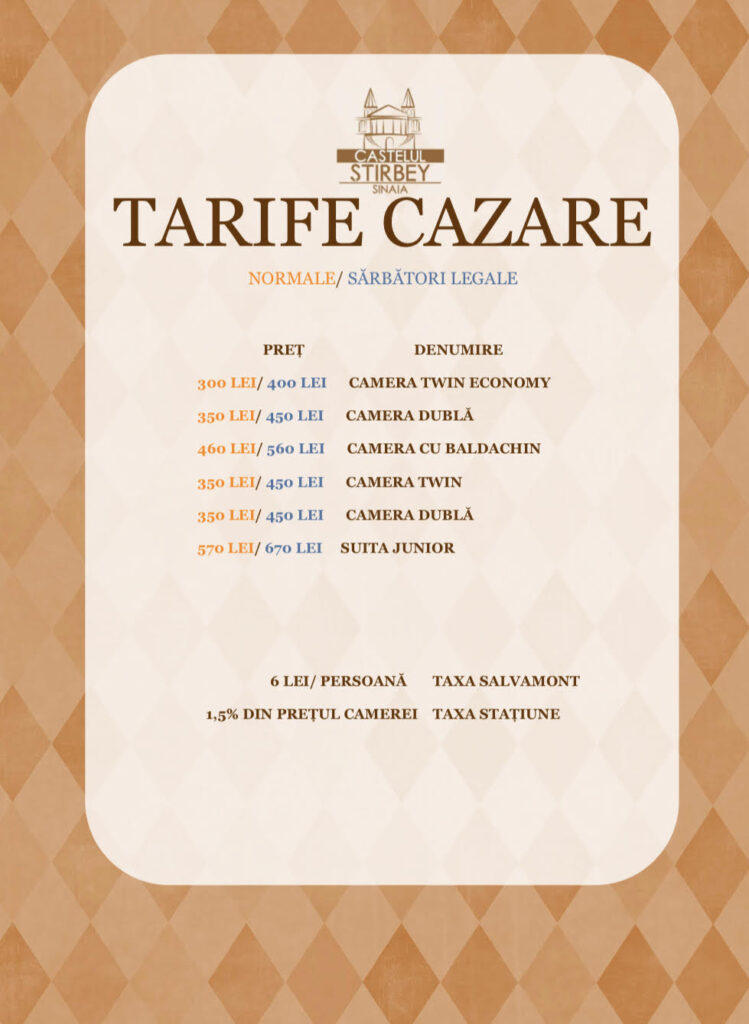 Rezervari la 0733058112 sau castelulstirbei@gmail.com